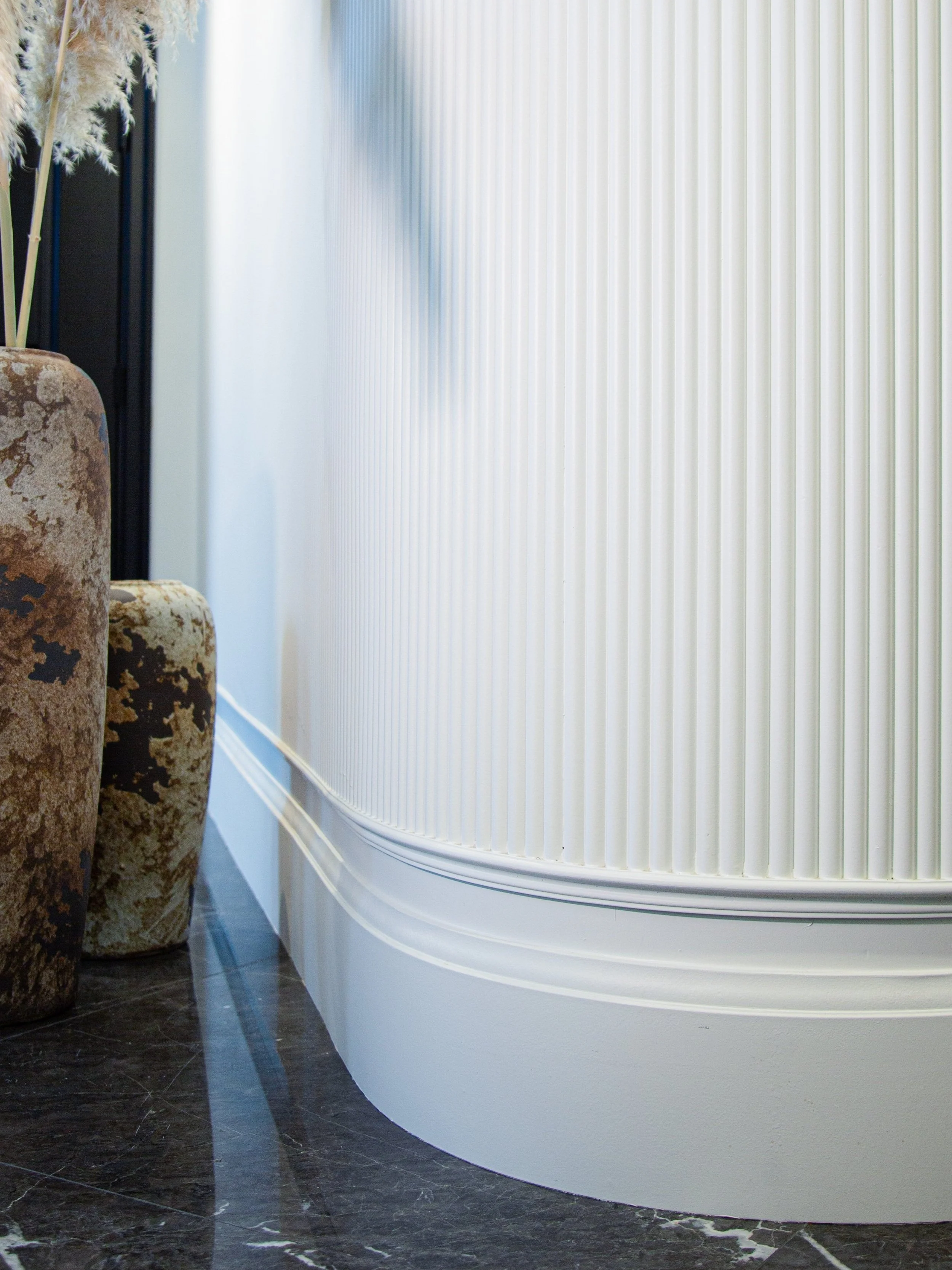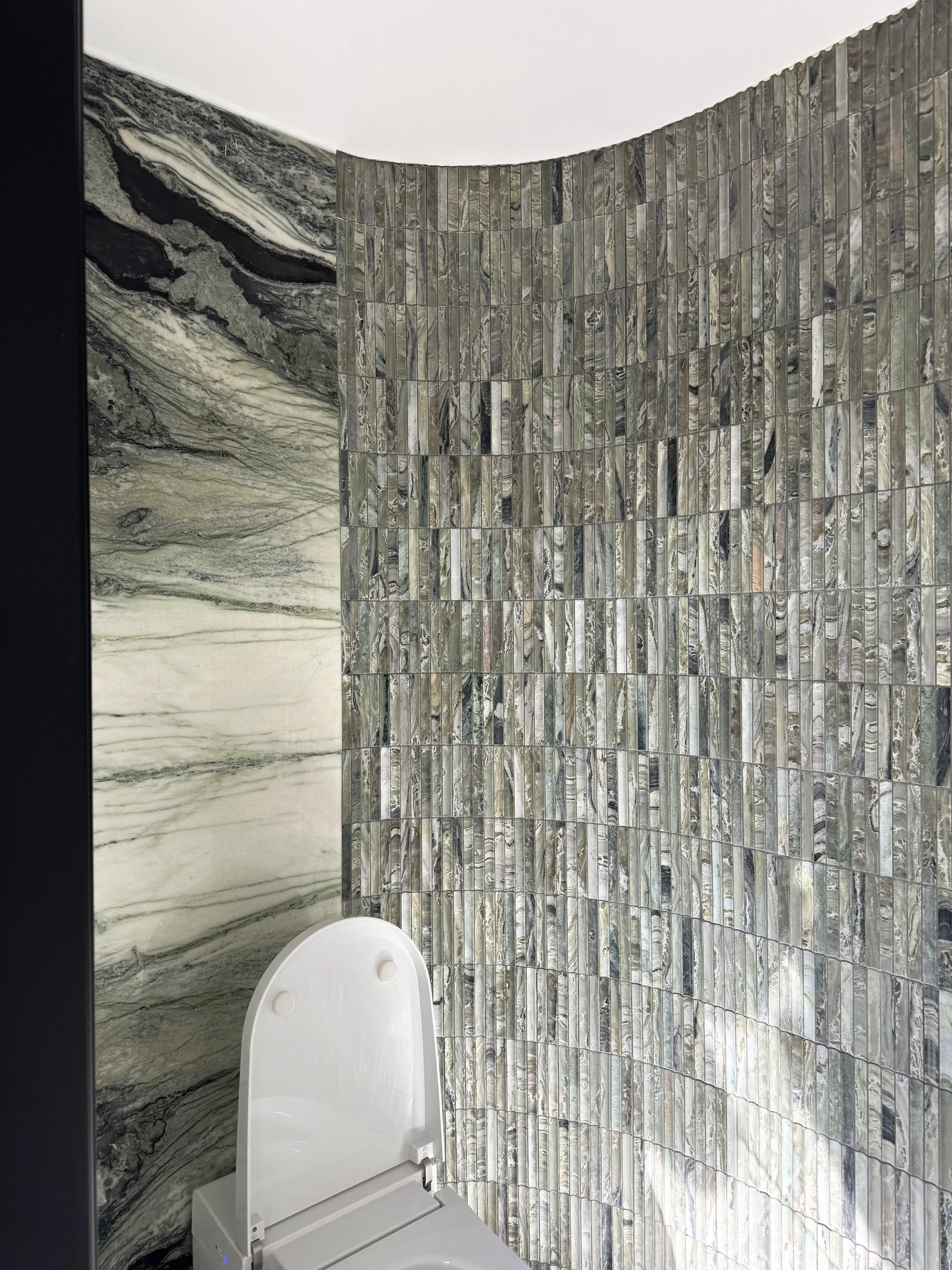 The original space, defined by its abundance of curved wall structures, is thoughtfully reinterpreted through a delicate balance of soft lines and rich textures, subtly embodying the essence of both romanticism and minimalism.