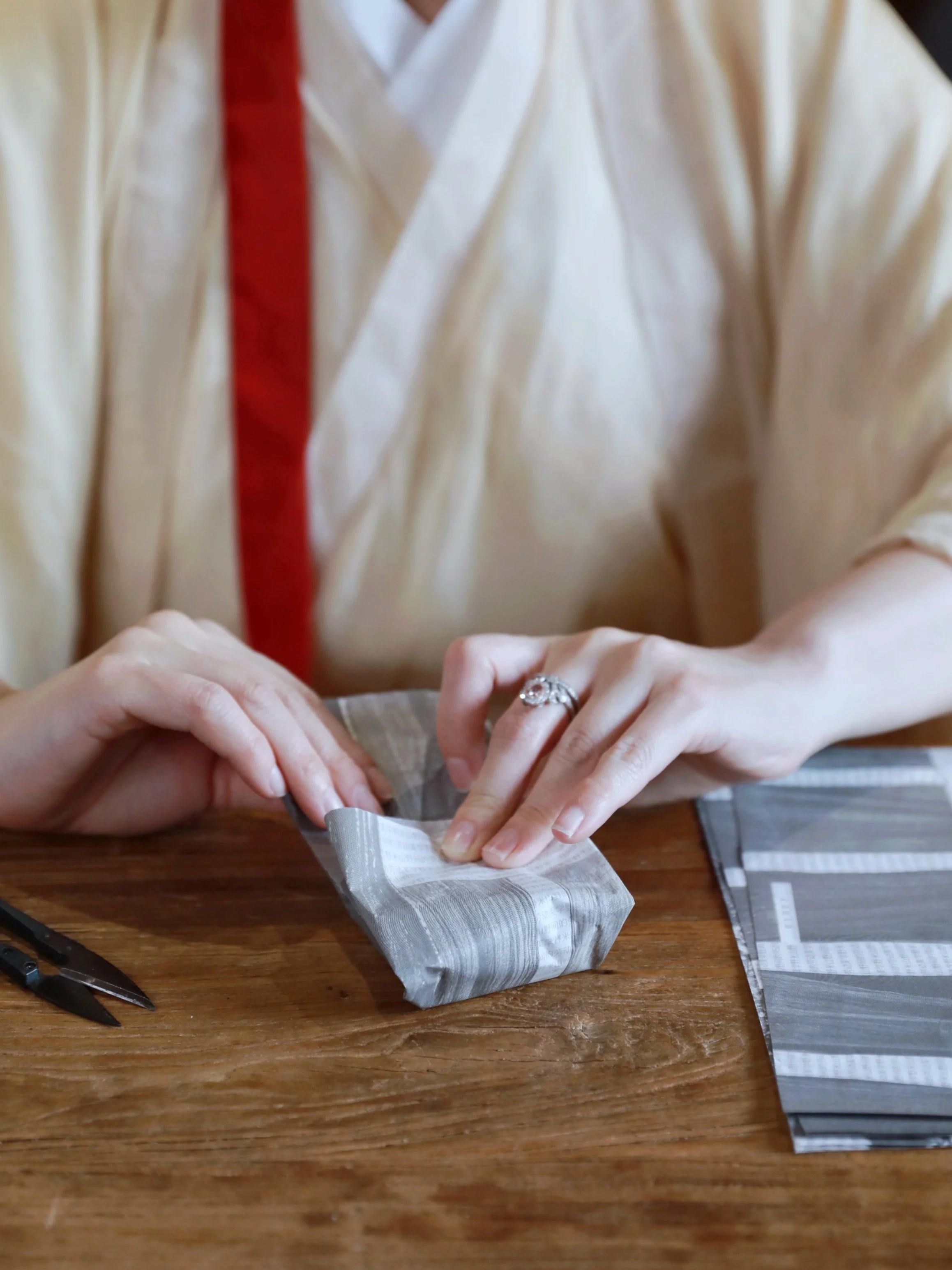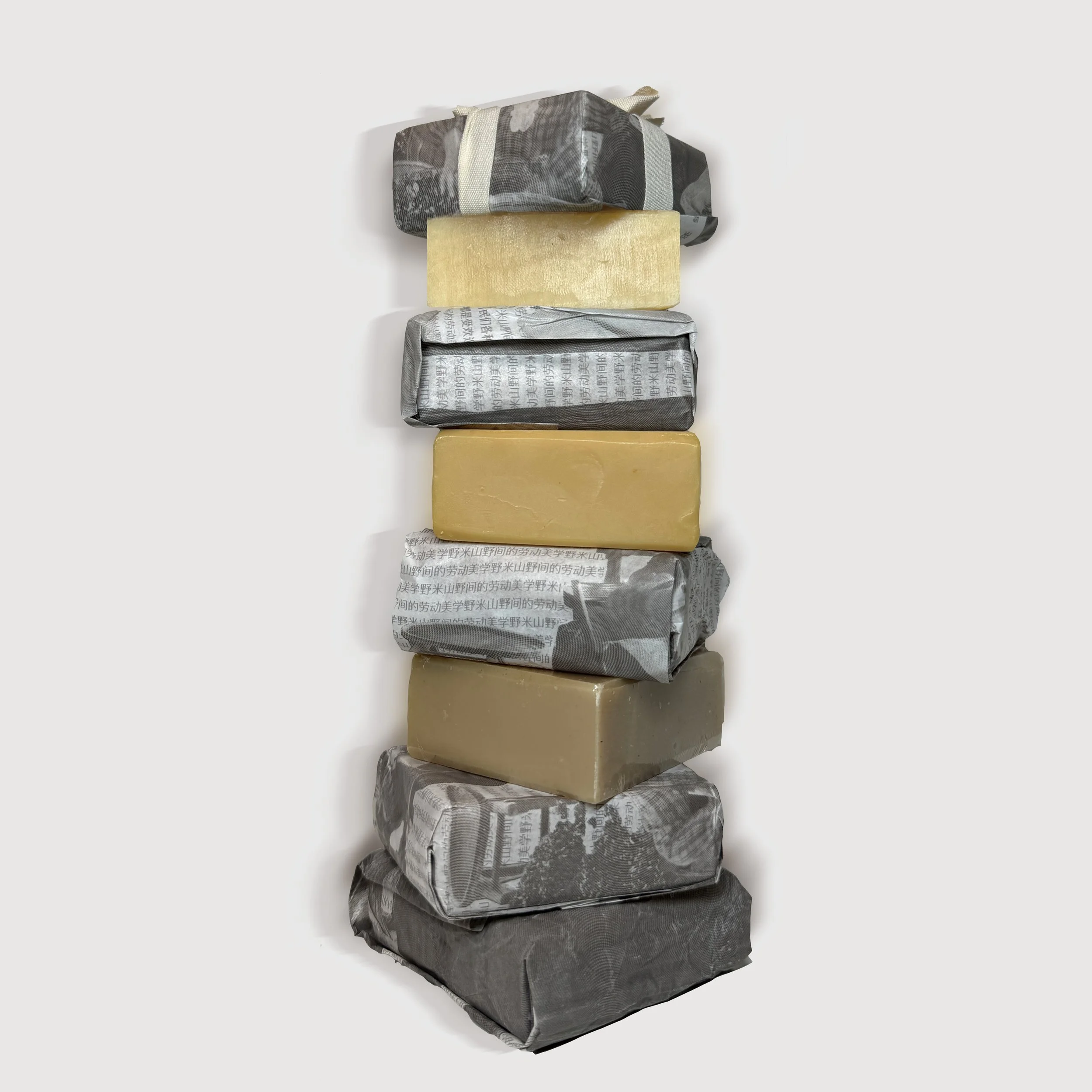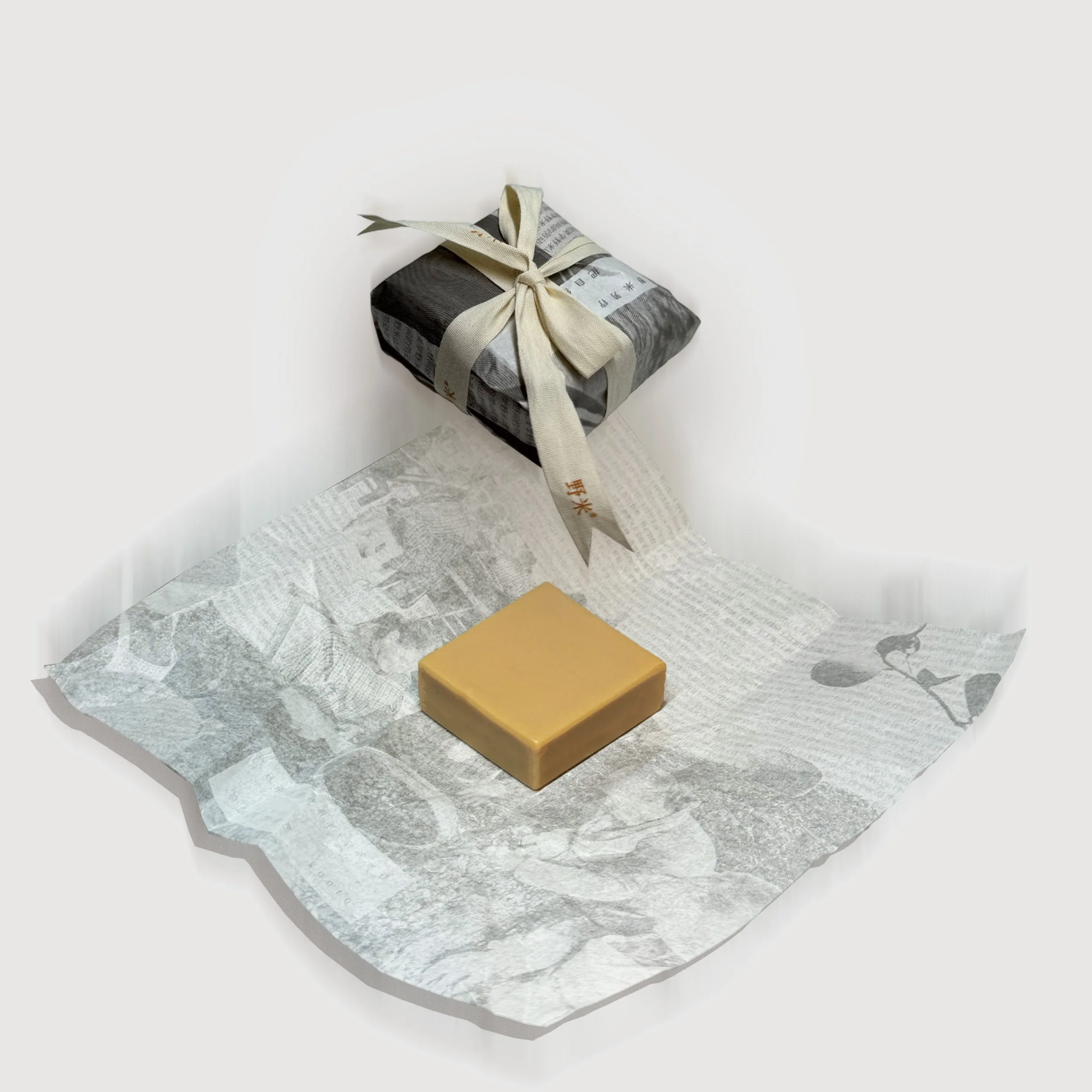 The design seamlessly blends images with text, creating multiple layers to captivate users and encourage exploration of the information conveyed through the soap packaging. The description of the making process was hidden in the repetitive Chinese characters. Within the text backgrounds, each shot embeds descriptions of the handmade process, providing surprises for the users. The packaging paper subtly reveals the soap's colors, enticing users to untie the ribbon and explore the essence of nature